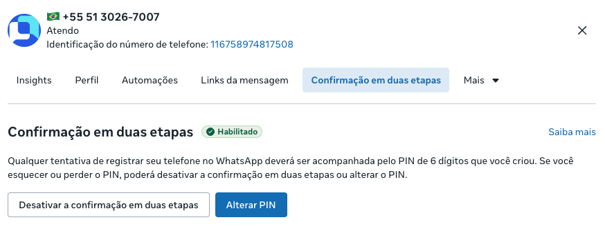 No entanto, antes de migrar sua conta de WhatsApp para outro provedor de serviços (BSP), é necessário desativar temporariamente esse recurso. Para isso, siga os passos abaixo: